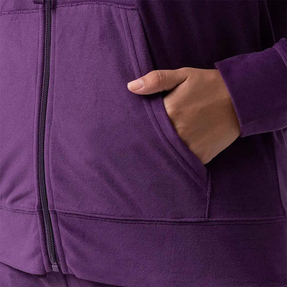 ชุดกีฬาผู้หญิงคุณภาพสูงแบบมีฮู้ด ระบายอากาศได้ดี ชุดวิ่งออกกำลังกายแบบสั่งทำพิเศษสำหรับฤดูหนาว พิมพ์โลโก้ด้านหน้า ปักลาย 3 มิติ 100%