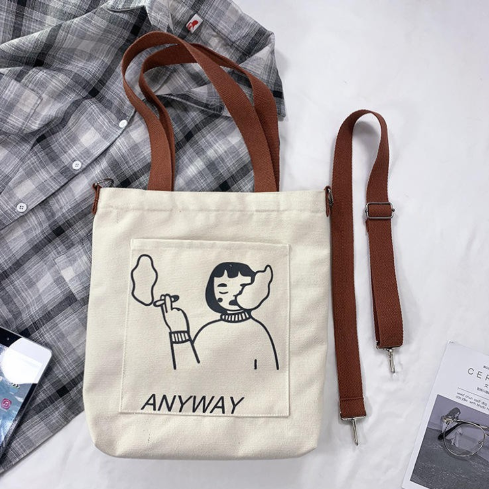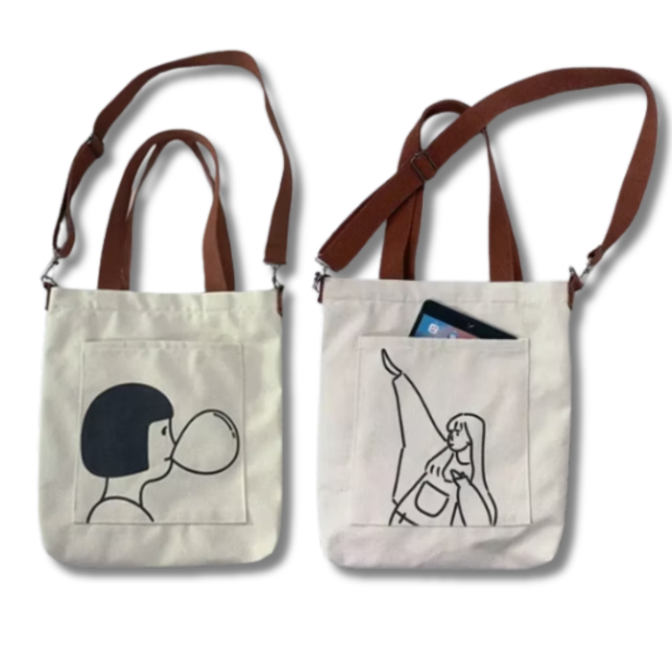 กระเป๋าสะพายข้างขนาดใหญ่สำหรับผู้หญิงกระเป๋าถือผ้าใบหวายลายพิมพ์โลโก้กระเป๋าน่ารักดีไซน์เวียดนาม