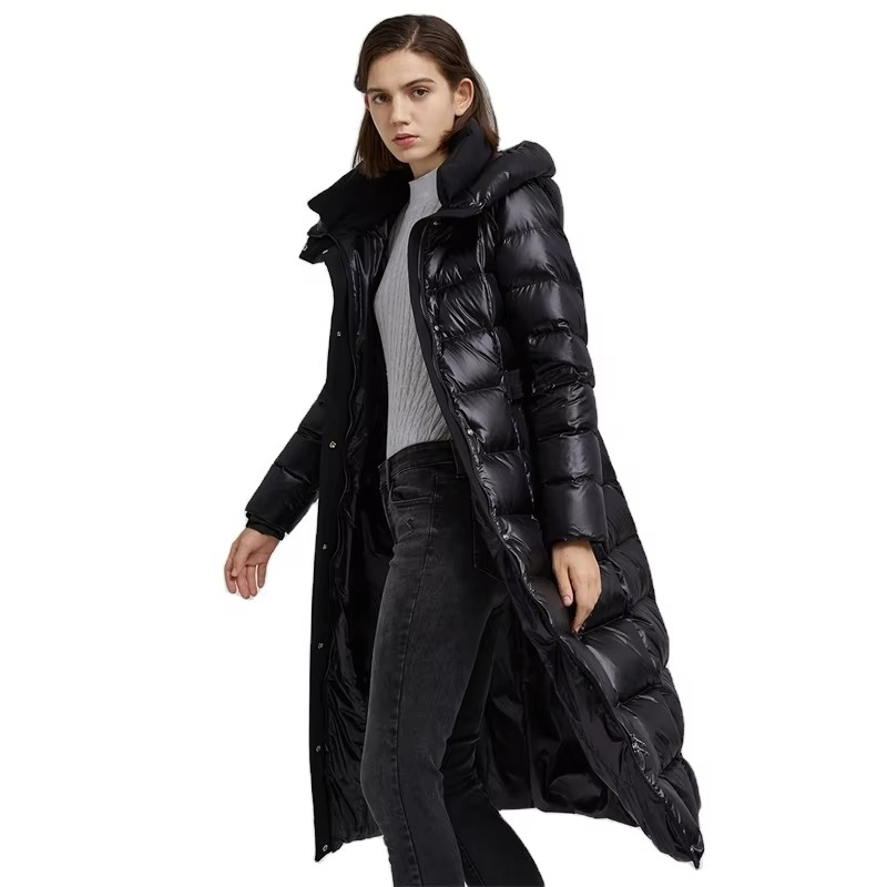High Quality Women’s Long Puffer Jacket Quilted Hooded Coat Polyester Filling Warm Winter Outerwear