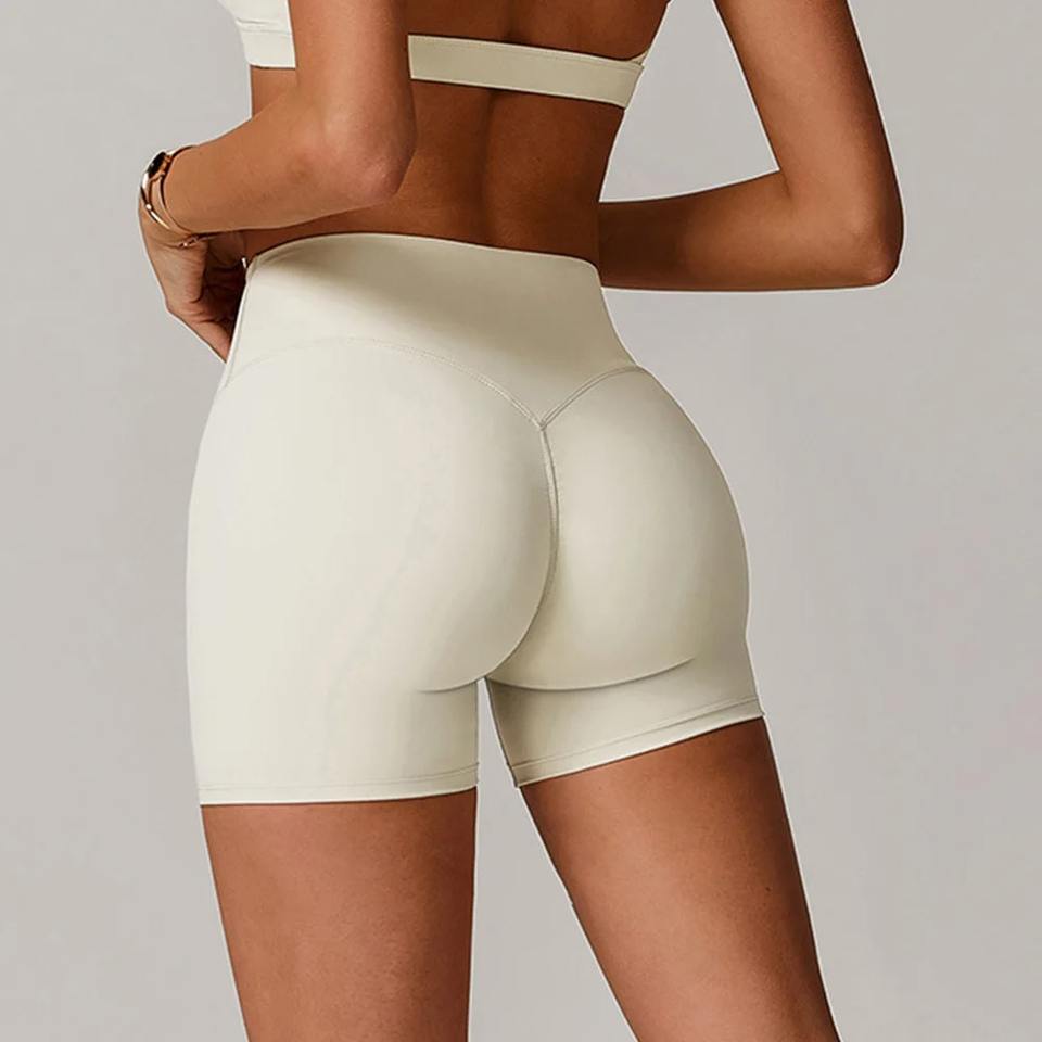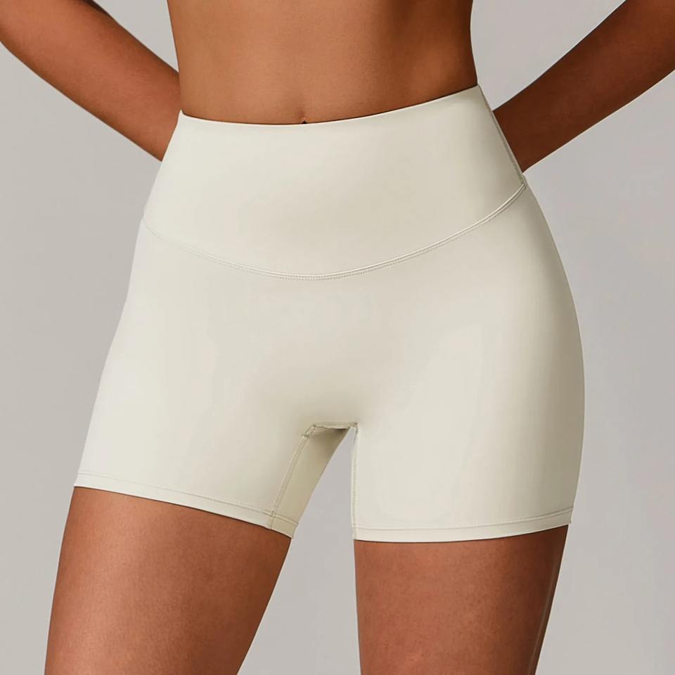 กางเกงขาสั้นผ้าฝ้ายสำหรับออกกำลังกายเล่นโยคะของผู้หญิงกางเกงขาสั้นสีพื้นสูงปานกลางสูงสำหรับ100% ควบคุมหน้าท้อง