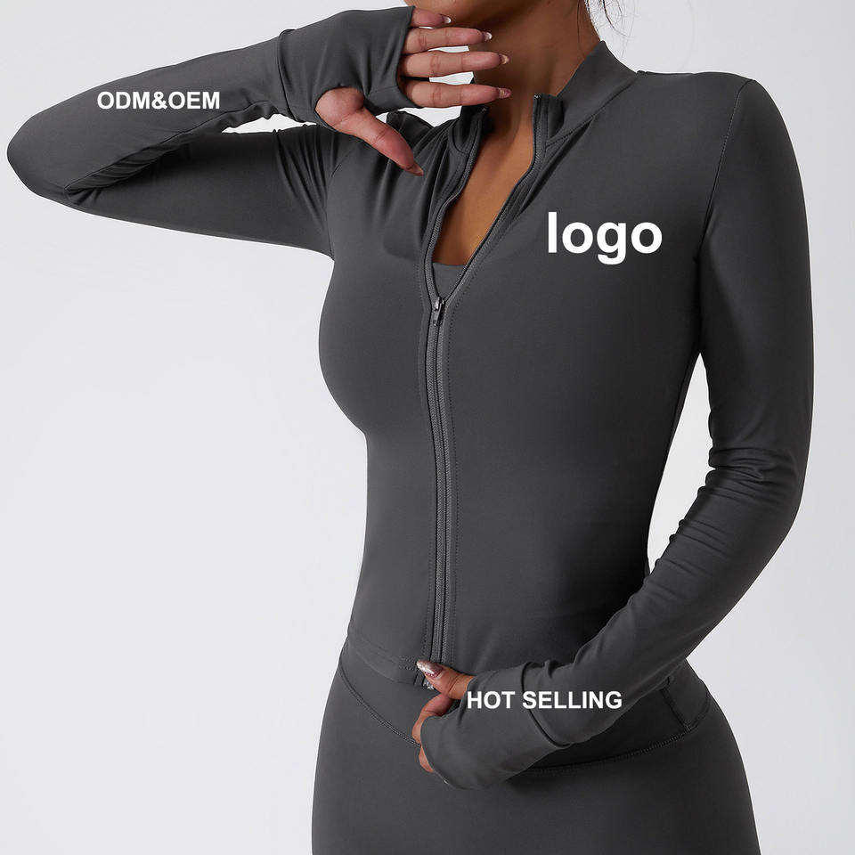 แจ็กเก็ตโยคะแบบซิปเต็มตัวสำหรับผู้หญิงระบายอากาศได้ดีแห้งเร็วไร้รอยต่อยืดได้น้ำหนักเบารีไซเคิลได้