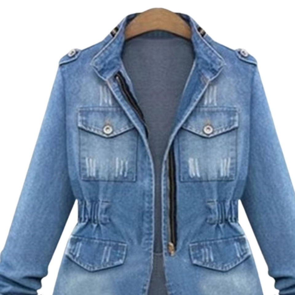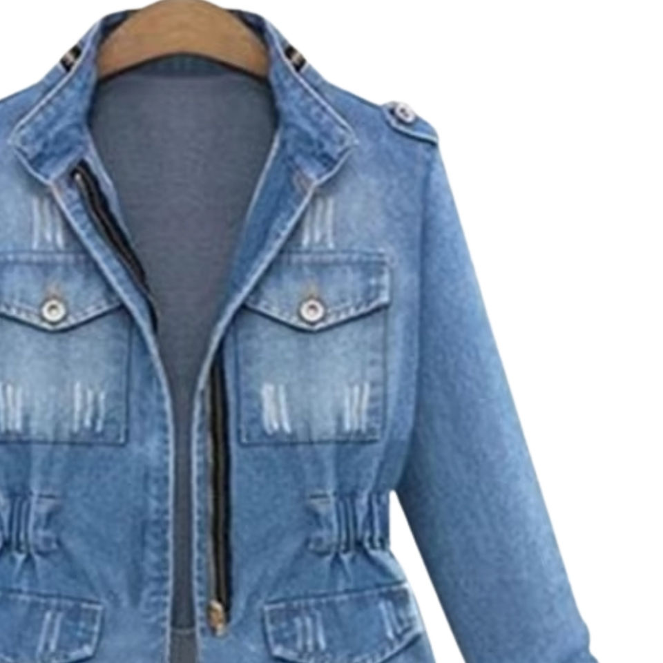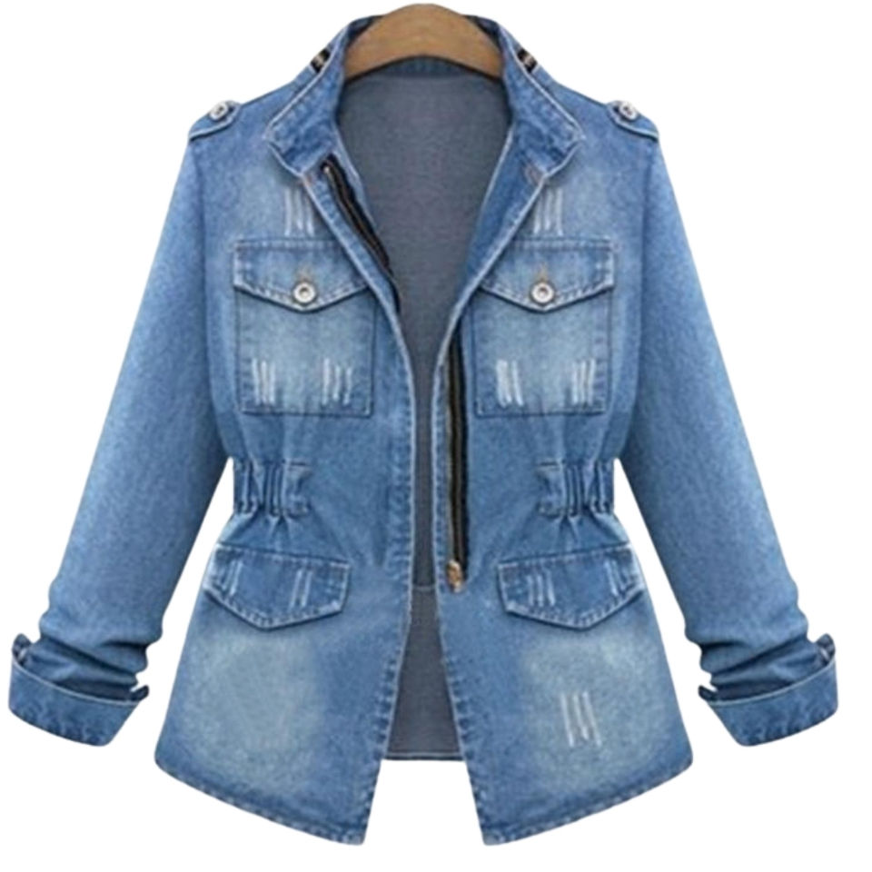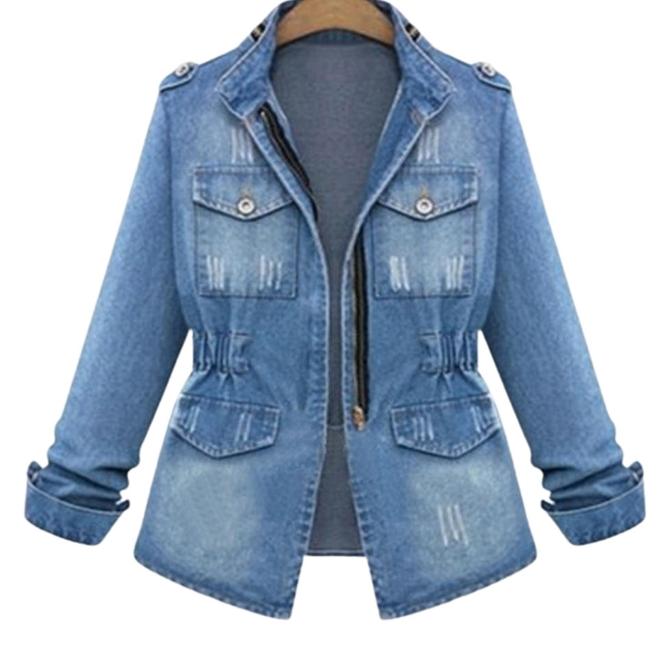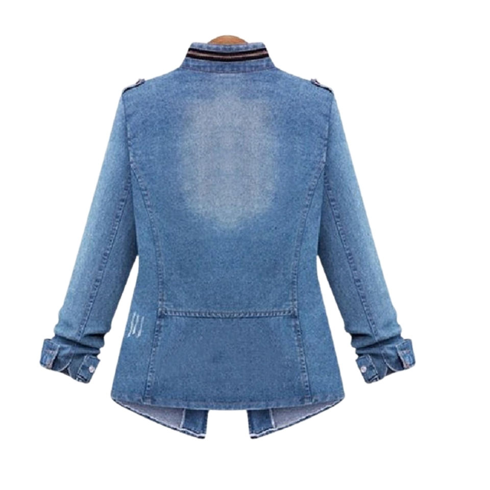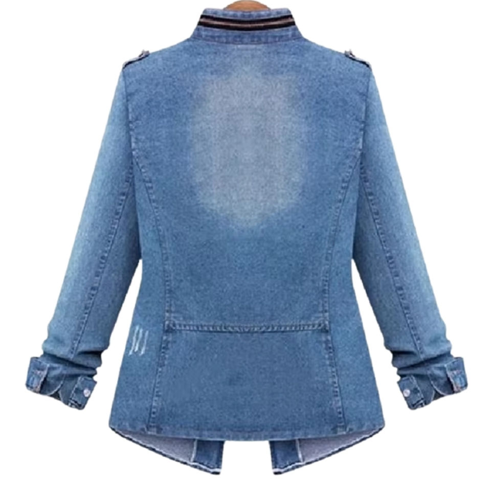 แจ็กเก็ตผ้ายีนส์ซักได้ทรงพอดีตัวสำหรับผู้หญิงกระดุมตกแต่งทันสมัยสำหรับทุกฤดูกาล