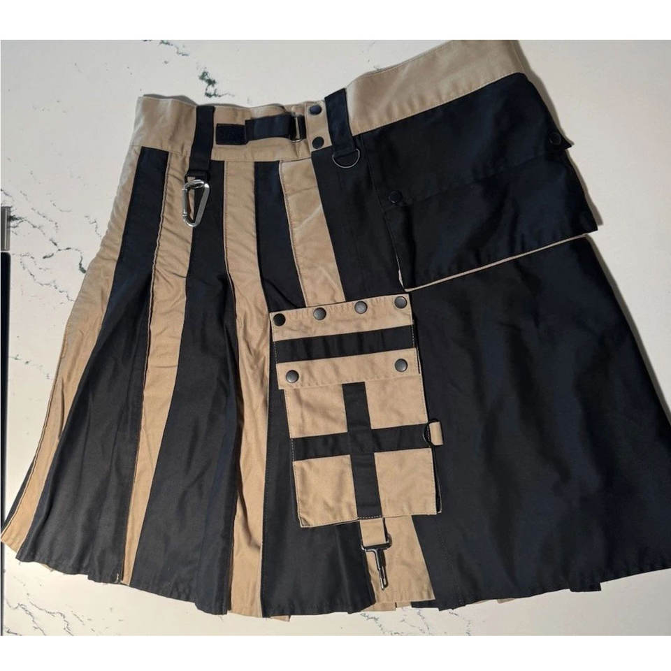 กิ๊ตสก็อตหญิงคุณภาพสูง สีแทน/ดำ/กากี ผ้าฝ้าย มีกระเป๋าคาร์โก้ ขายส่งจากโรงงาน