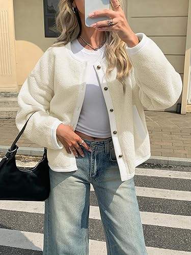 เสื้อแจ็คเก็ตขนเชอร์ปาคุณภาพสูงสำหรับผู้หญิง แบบครอป ติดกระดุม คอวี สำหรับใส่เป็นเสื้อนอก