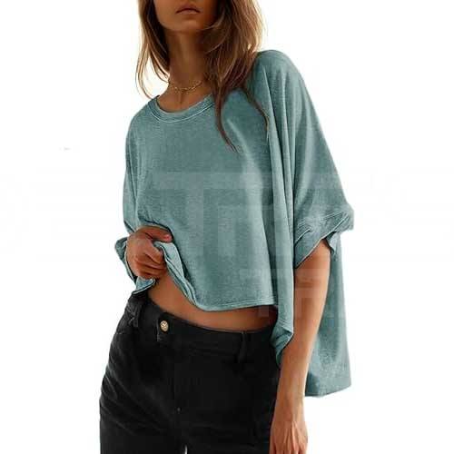 เสื้อยืดครอปแขนสั้นสำหรับผู้หญิงคุณภาพสูงคอกลมปกเสื้อใส่สบายเสื้อยืดสไตล์ปากีสถาน