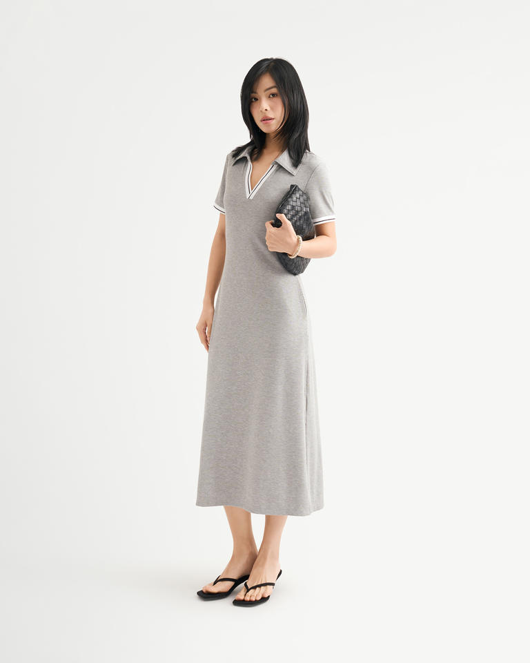 เดรสทรงตรงคอปก ผ้าโพลีวิสโคสแปนเด็กซ์ คุณภาพสูง ทรงเข้ารูปสำหรับผู้หญิง สีพื้น ทรงปกติ สวมใส่สบาย ยาวแบบแม็กซี่ เหมาะสำหรับใส่ในชีวิตประจำวัน