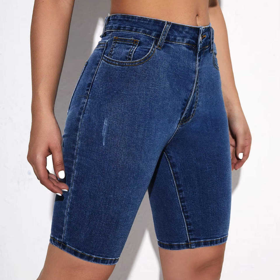 กางเกงยีนส์ขาสั้นผู้หญิงคุณภาพสูง ทรงสกินนี่ กระชับรูป ทรงเข้ารูป มีกระเป๋าห้าช่อง แฟชั่น กางเกงยีนส์ขาสั้นสั่งทำพิเศษ กางเกงยีนส์ลำลองสำหรับฤดูร้อน