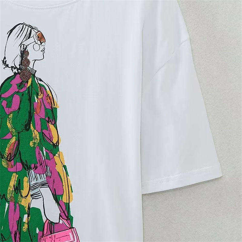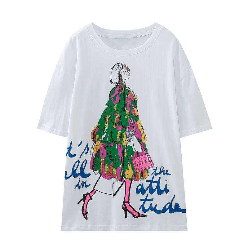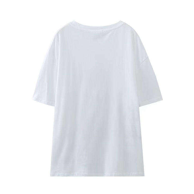 เสื้อยืดพิมพ์ลายฤดูร้อนคุณภาพสูงสำหรับผู้หญิง ผ้าฝ้าย 100% ทรงเข้ารูป ระบายอากาศได้ดี แขนสั้น คอกลม ขายส่ง