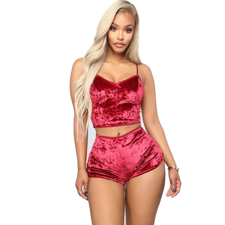 ชุดกางเกงขาสั้นผ้ากำมะหยี่สองชิ้นสำหรับผู้หญิงมีผ้าปะติดสำหรับฤดูหนาว