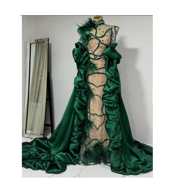 ชุดราตรีทรงเมอร์เมดยาวกรอมพื้น คุณภาพสูง สำหรับผู้หญิง ดีไซน์หรูหรา เหมาะสำหรับงานปาร์ตี้ ผ้าเนื้อดี ประดับด้วยลูกปัดและมุก พร้อมซับใน
