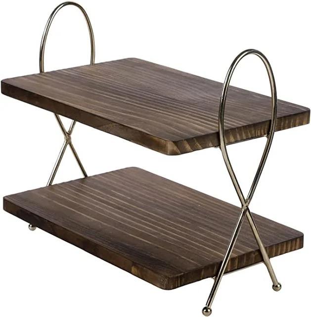 แท่นวางเค้กแผ่นไม้และด้ามจับโลหะไม้อาเคเซียธรรมชาติ3ชั้น
