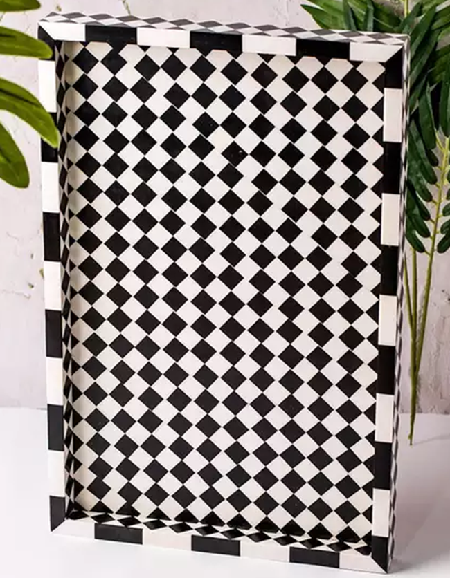 ถาดไม้คุณภาพสูงดีไซน์คลาสสิกงานแฮนด์เมดแบบธรรมชาติฝังกระดูก MDF อาหารได้แรงบันดาลใจจากอินเดียสำหรับการให้บริการบ้านร้านอาหารโรงแรม