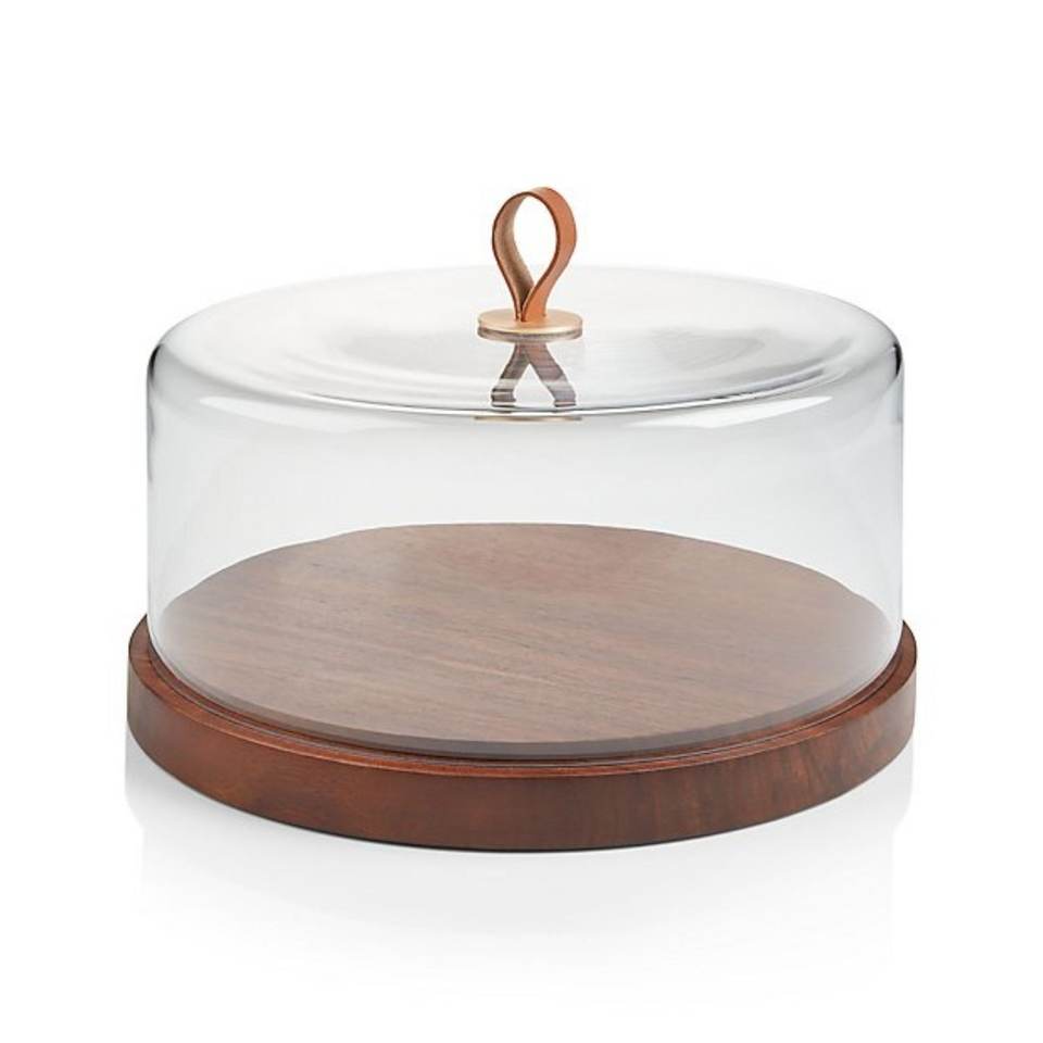 ฐานวางเค้กไม้พร้อมฝาครอบแก้วทรงโดมขนาด 12 นิ้ว ฐานวางขนมหวานทรงกลมแบบเป็นมิตรกับสิ่งแวดล้อม