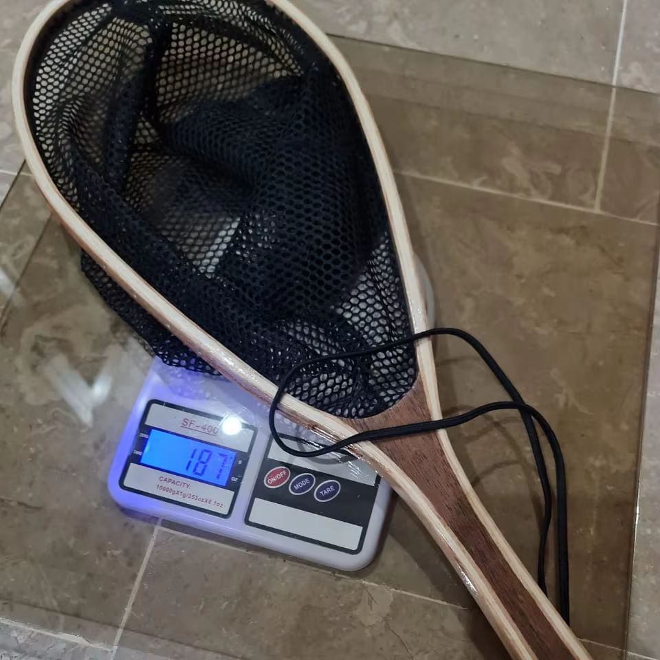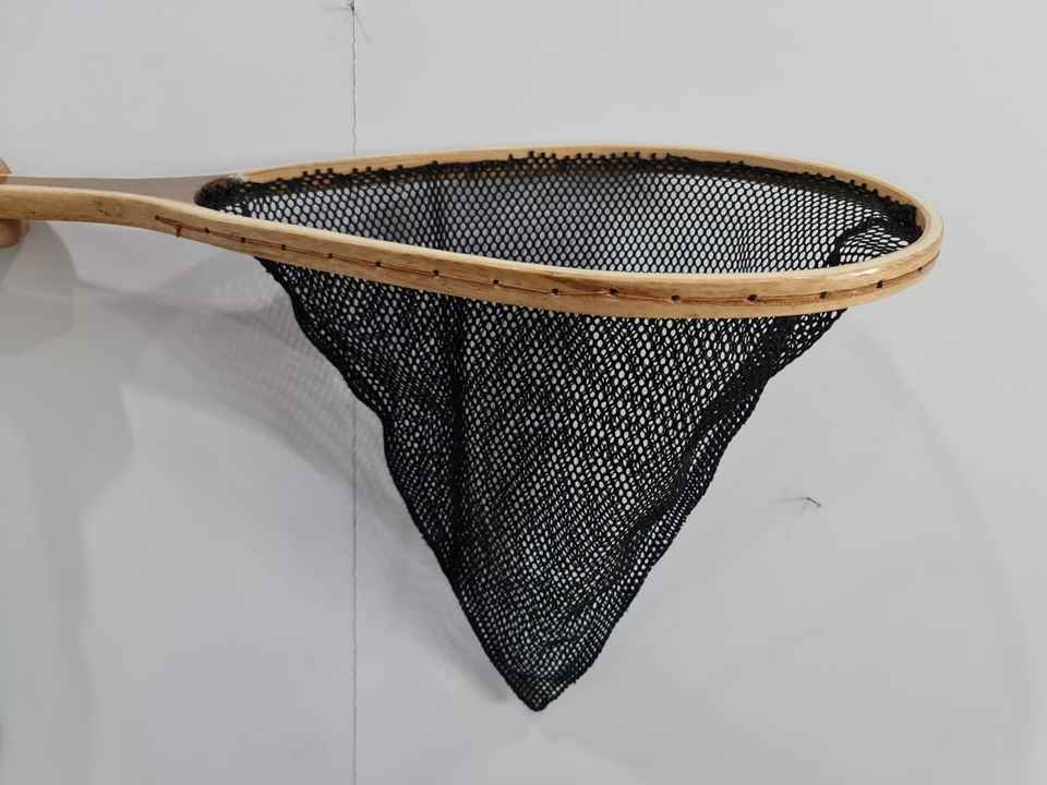 ตาข่ายจับและปล่อยด้วยมือทำจากไม้มีตะขอแขวนแบบยาวและลึกสำหรับตกปลาเทราต์