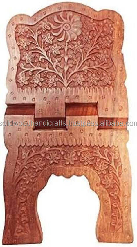 ที่ตั้งหนังสือศักดิ์สิทธิ์ทำจากไม้คุณภาพสูงที่ตั้งหนังสือพับได้ฝาพับเก็บได้ที่เก็บไม้แกะสลักสำหรับคัมภีร์กุรอานและหนังสือจิตวิญญาณอื่นๆ