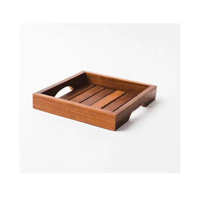 จานและจานโลหะสำหรับตกแต่งเครื่องดื่มผลไม้ทรงสี่เหลี่ยมอเนกประสงค์ถาดเสิร์ฟอาหารทำจากไม้