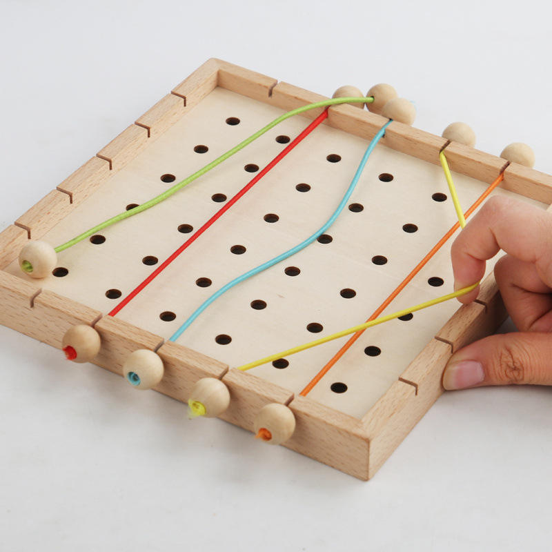 ของเล่นไม้เพื่อการเรียนรู้เพื่อการศึกษาสำหรับเด็กเด็กชายและเด็กหญิงกระดานยางเป็นสายร้อยลูกปัด