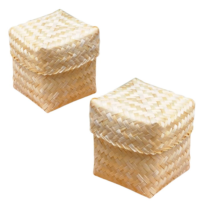 ตะกร้าไม้ไผ่สานคุณภาพสูงสไตล์ชนบทสำหรับบรรจุภัณฑ์ของขวัญและของตกแต่งตามฤดูกาลทำด้วยมือสำหรับงานแต่งงาน