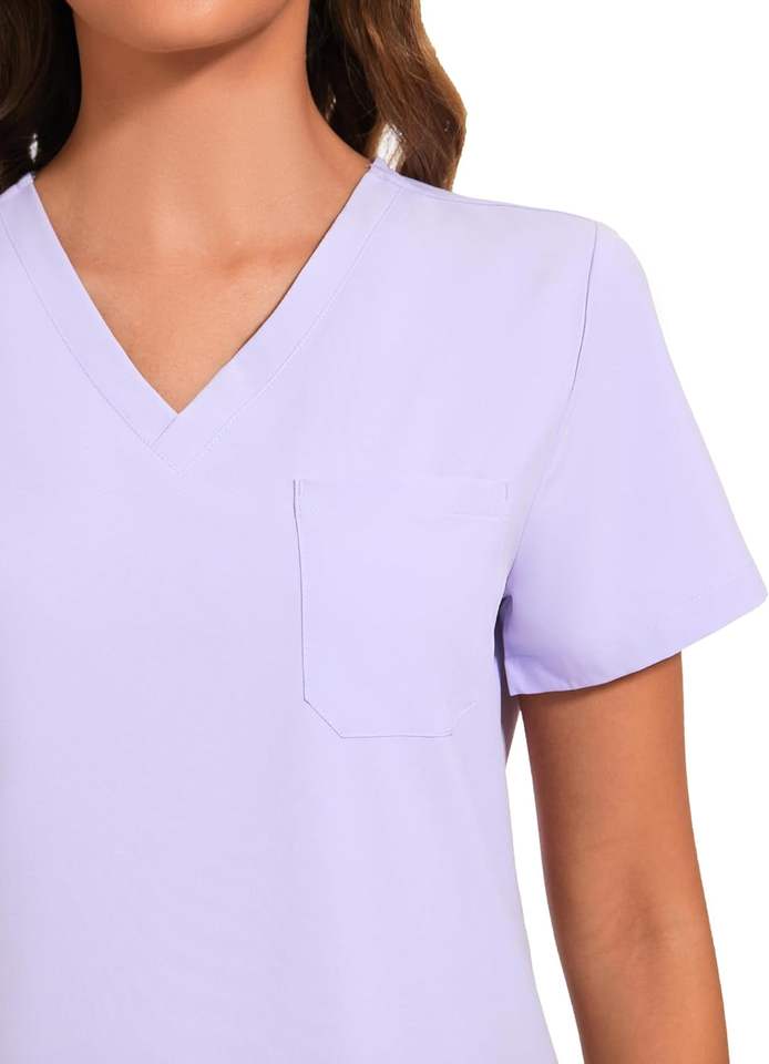 ชุดยูนิฟอร์มพยาบาลผ้าสแปนเด็กซ์คุณภาพสูง แบบทอ คอตั้ง แขนสั้น สีและโลโก้สั่งทำได้ 2 ชิ้น แบบ unisex สำหรับงานเข็มฉีดยา