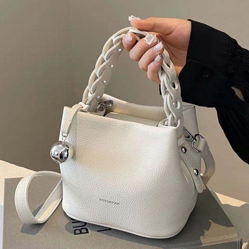 กระเป๋าถือสะพายข้างผ้า PU คุณภาพสูง ลายทอ แฟชั่นวินเทจ ทรงถัง สำหรับผู้หญิง