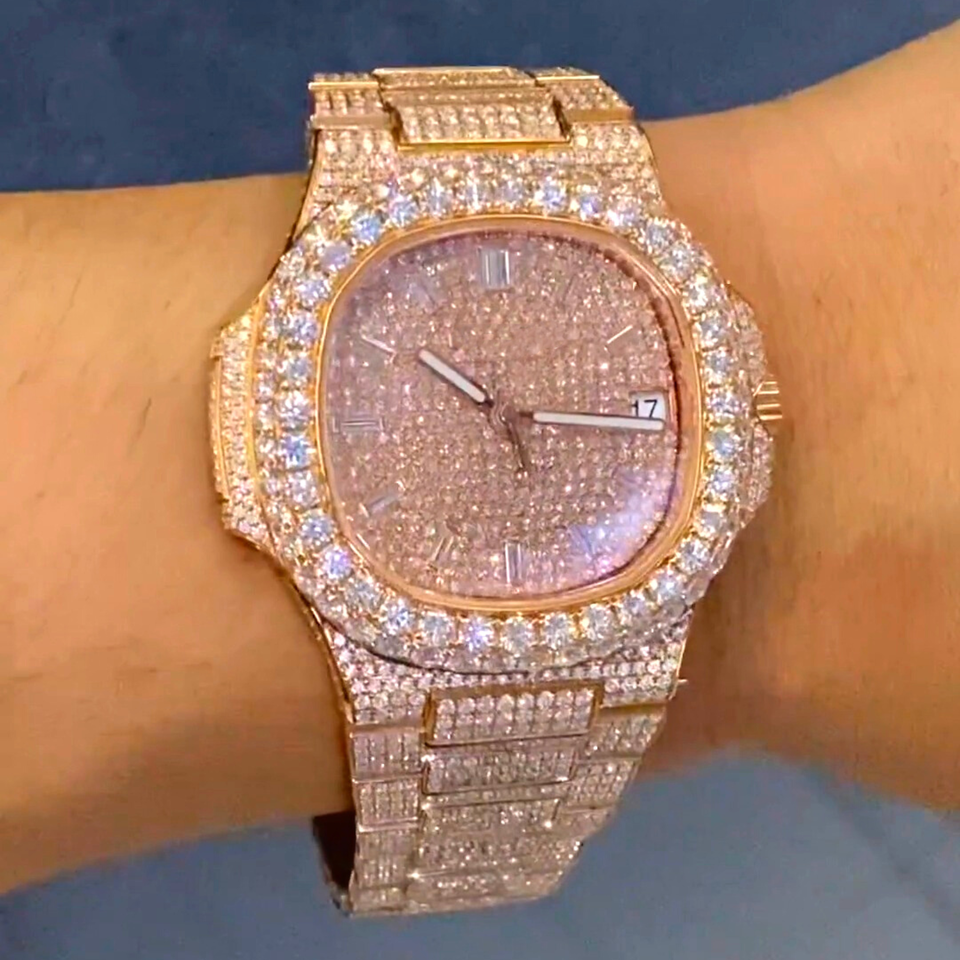 นาฬิกาข้อมือคุณภาพสูงนาฬิกา Moissanite, VVS คุณภาพหินแก้วหรูหราผู้ชายสแตนเลสสีขาวสแควร์รอบ