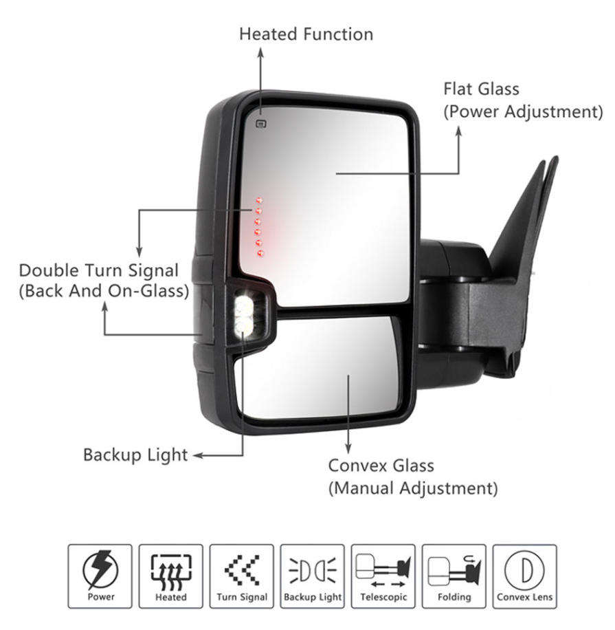 กระจกมองข้างไฟฟ้าคุณภาพสูงพร้อมไฟเลี้ยวสำหรับ GMC Sierra Chevrolet Silverado ปี 2007-2013 สภาพใหม่