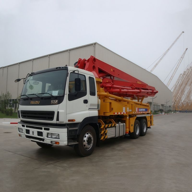 Xuzhou HB37A รถบรรทุกปั๊มคอนกรีตใหม่37เมตรพร้อมแชสซีคุณภาพส่วนประกอบแบริ่งมอเตอร์เครื่องยนต์