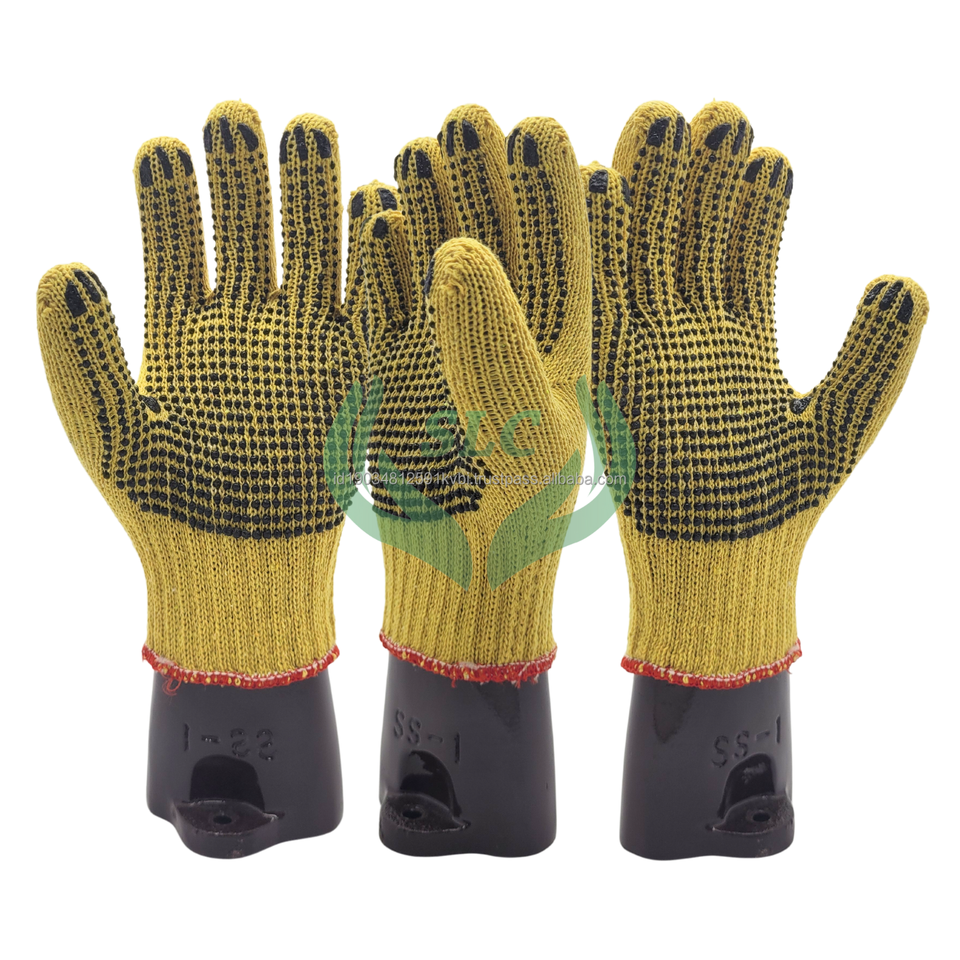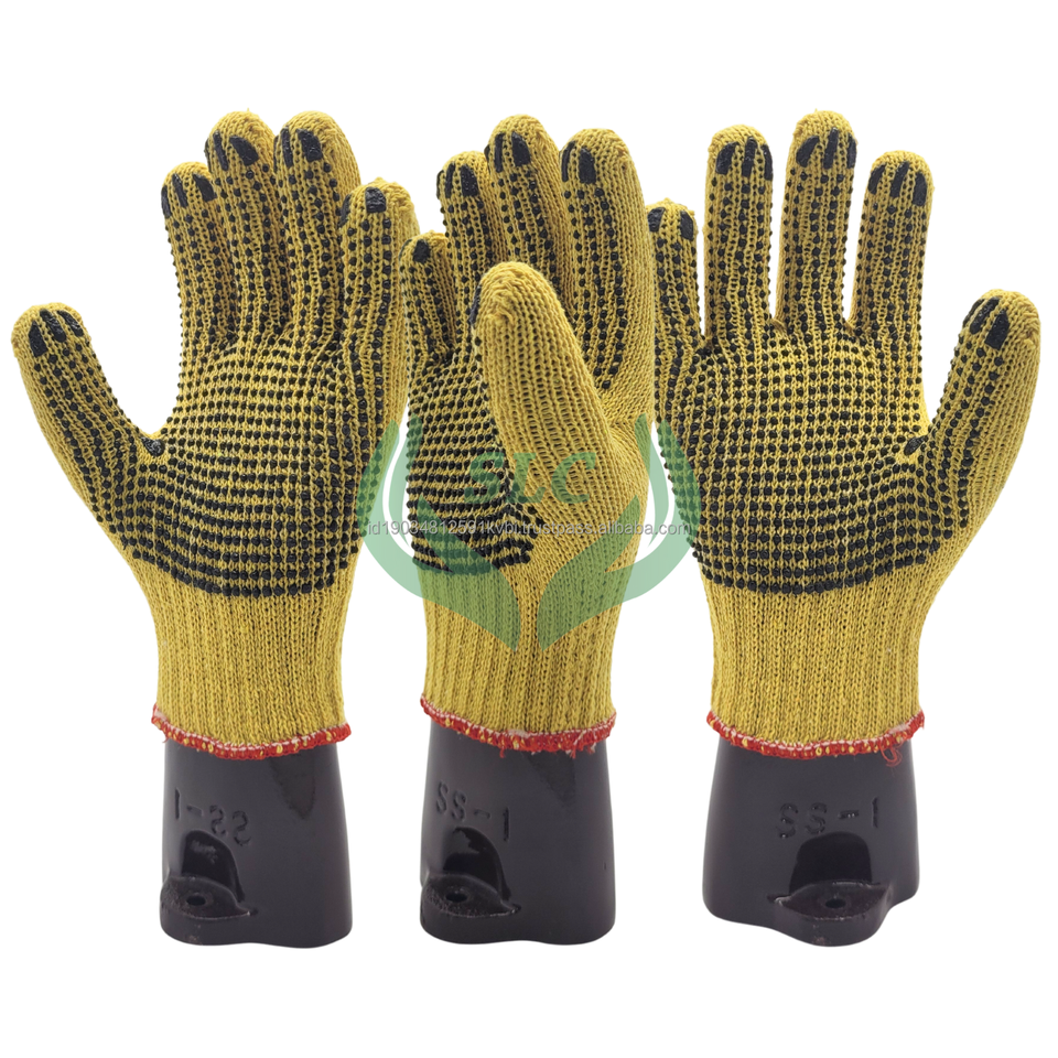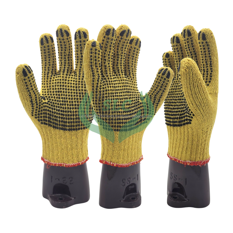 ถุงมือทำงานทำจากผ้าฝ้ายสีเหลืองถุงมือนิรภัยสำหรับโลจิสติกส์ที่เชื่อถือได้