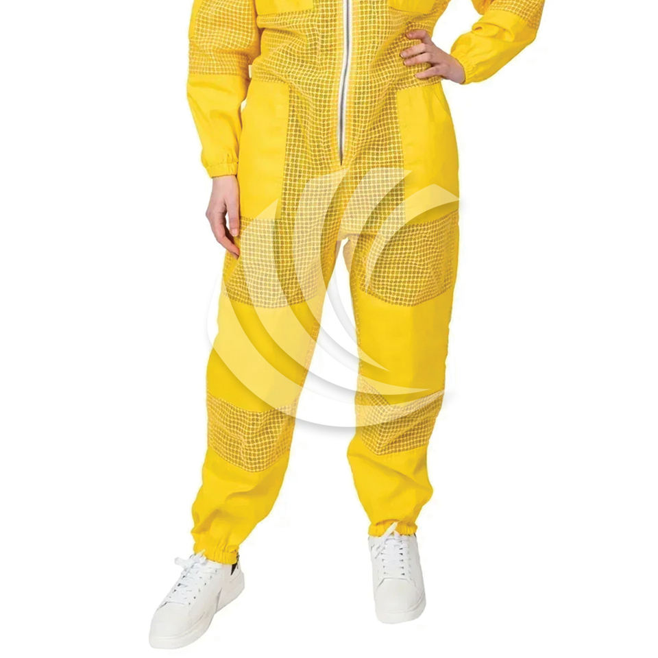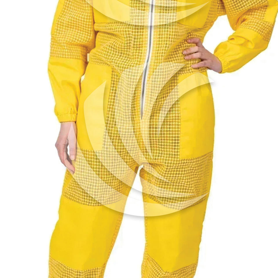 ผ้าคลุมหน้าตาข่ายคอตตอนสีเหลืองพร้อมชุดป้องกันร่างกายเต็มตัวชุดป้องกันผึ้งชุดเครื่องแบบระบายอากาศ
