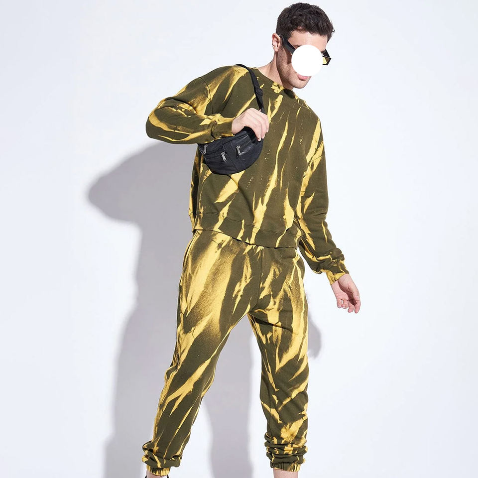 ชุดวอร์มพิมพ์ลายมะกอกสีเหลืองคุณภาพสูง ทรงปกติ ผ้าฝ้ายฟลีซ แขนยาว เสื้อและกางเกง สตรีทแวร์ลำลอง ใส่ได้ในฤดูหนาว ระบายอากาศได้ดี