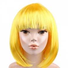 วิกผมบ๊อบหยิกสั้นสีเหลืองด้านหน้าลูกไม้10นิ้วพร้อมผมม้าใยสังเคราะห์