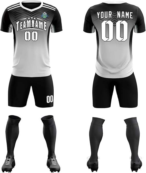 ชุดฟุตบอลสำหรับเด็กและเยาวชน3D เสื้อเจอร์ซีย์กันความชื้นแบบมีขนาดคอวีระบายอากาศได้ดีสำหรับ2-12Y