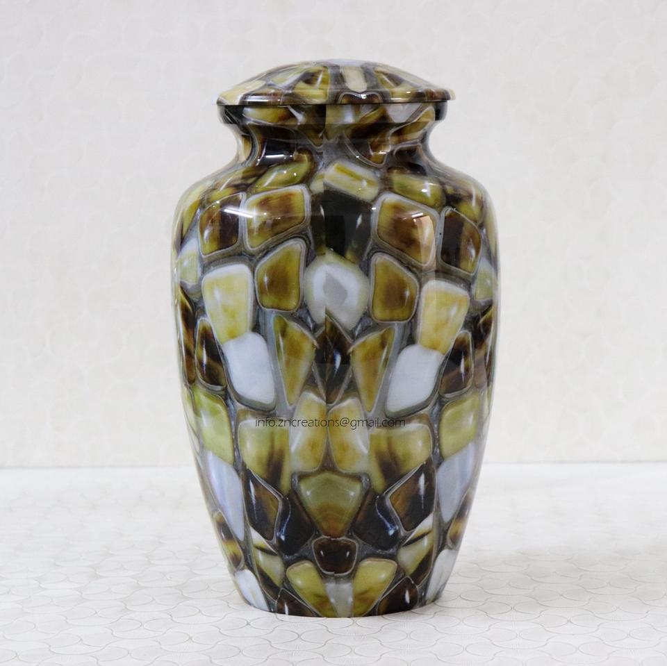 โกศบรรจุอัฐิคุณภาพสูง ZN แบบสั่งทำพิเศษ ทำจากอะลูมิเนียมและทองเหลือง งานหล่อโลหะทำมือ ขนาด 10 นิ้ว สำหรับเก็บอัฐิมนุษย์จากอินเดีย