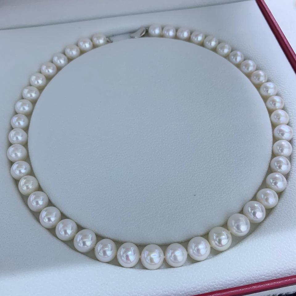 สร้อยคอมุกน้ำจืดคุณภาพสูงจากจูจี้ ขนาด 10-11 มม. แบบไม่มีแกนกลาง แสงเงางาม สร้อยคอมุกน้ำจืดแบบไม่มีแกนกลาง