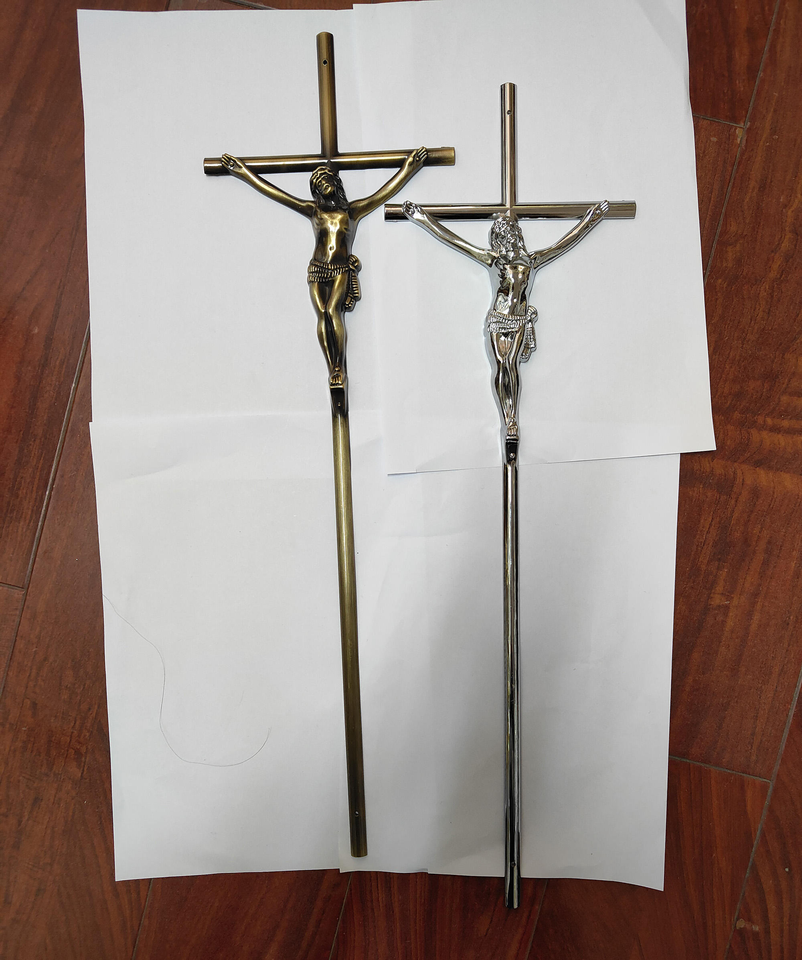 ไม้กางเขนโลหะคุณภาพสูงทำจากโลหะผสมสังกะสีสีบรอนซ์โบราณขนาดใหญ่ สำหรับตกแต่งโลงศพ อุปกรณ์เสริมสำหรับงานศพ
