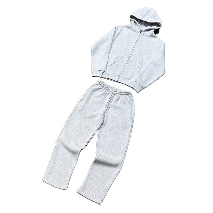 ผู้ผลิตชุดวอร์มซิปคุณภาพสูง ชุดเซ็ตฮู้ดดี้ผ้าเฟรนช์เทอร์รี่สีเทาแบบโอเวอร์ไซส์ น้ำหนักมาก สั่งทำได้ ชุดออกกำลังกายสองชิ้น