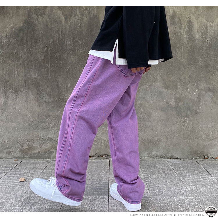 กางเกงยีนส์ทรงตรงสไตล์วินเทจทรงหลวมแนวสตรีทสำหรับผู้ชายสกปรกซักด้วยโคลน