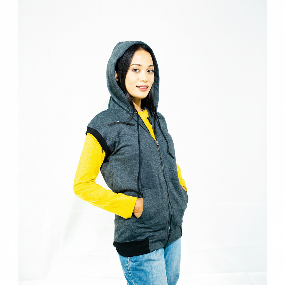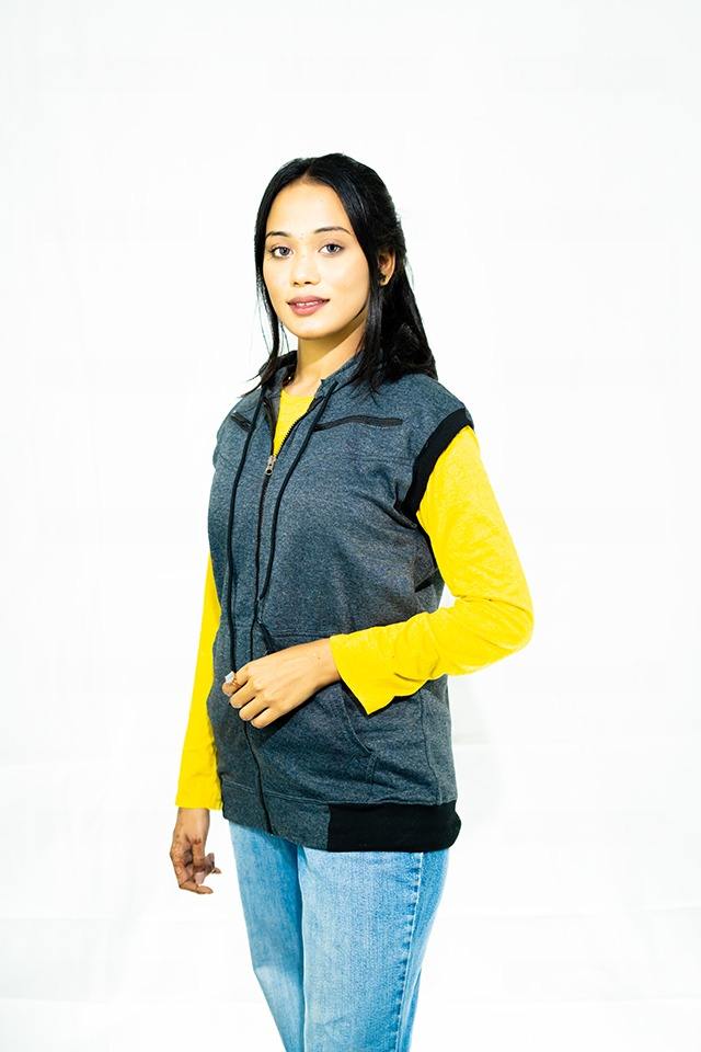 แจ็กเก็ตสีเทาเข้มมีซิปสำหรับผู้หญิงแจ็กเก็ตระบายอากาศได้ดีมีซิป