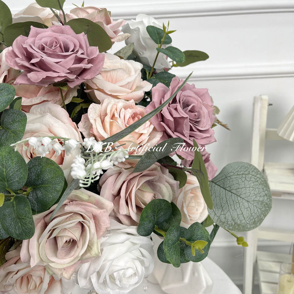 คีย์เวิร์ดของผลิตภัณฑ์:ลูกบอลดอกไม้ประดิษฐ์สำหรับตกแต่งโต๊ะในงานแต่งงานลูกบอลทำจากผ้าไหม