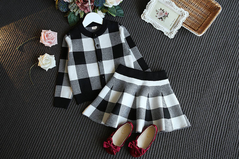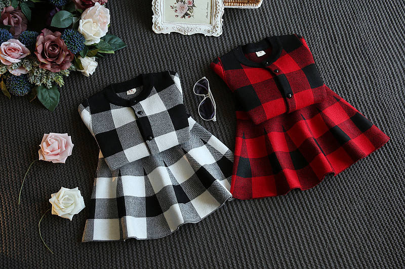 ชุดเดรสปาร์ตี้ลายตารางแขนยาวแบบคลาสสิกคุณภาพสูงสำหรับเด็กผู้หญิง 2 ชิ้น พร้อมรูปภาพประกอบ