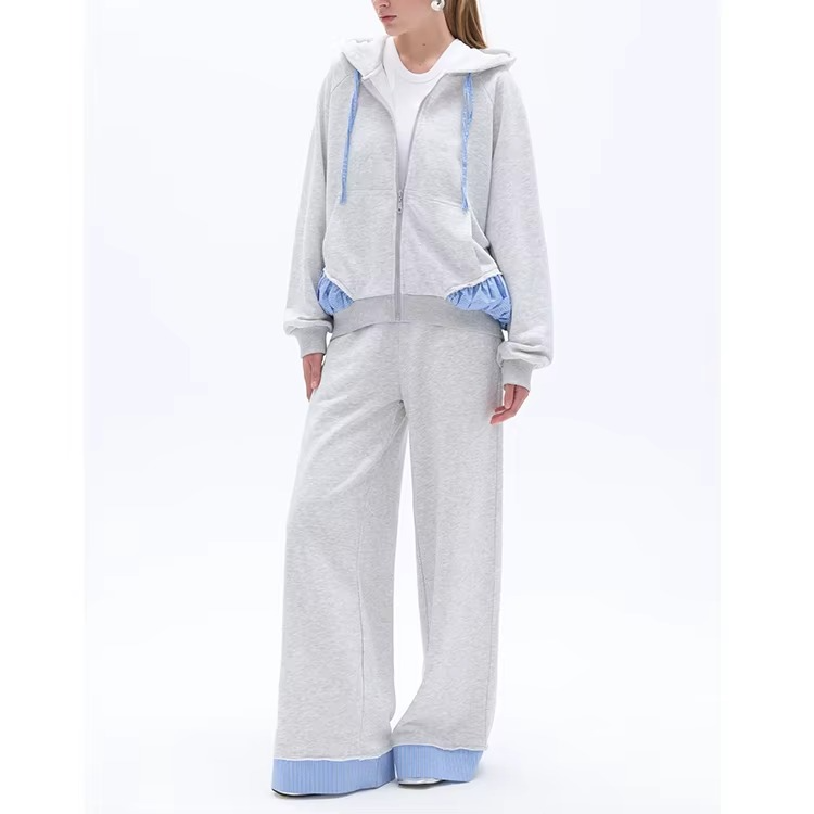 ชุดวอร์มสีเทาสำหรับผู้หญิงชุดวอร์ม2ชิ้นแบบมีเชือกรูดโอเวอร์ไซส์มีซิป