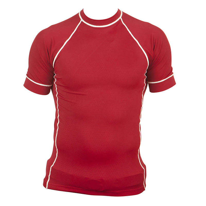 เสื้อแรชการ์ดแขนสั้นคุณภาพสูงสำหรับทุกเพศ ผลิตตามสั่ง (OEM) สำหรับว่ายน้ำ ทำจากไนลอน 100% สำหรับผู้ใหญ่ จาก Prime Craft Enterprises