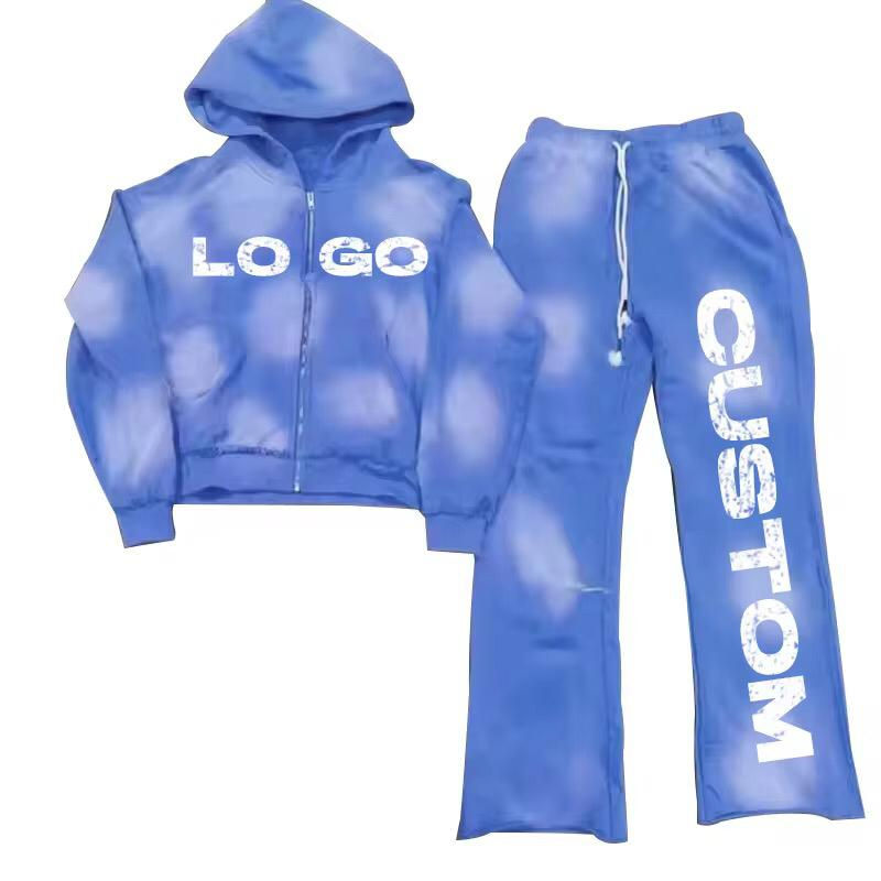 ชุดวอร์มซิปผู้ชายคุณภาพสูง สไตล์กางเกงวอร์มทรงหลวม สีซีดแบบซันเฟด สำหรับฤดูหนาว ผลิตในปากีสถาน ลายเรียบ