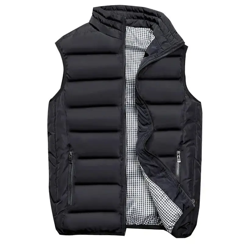 เสื้อแจ็กเก็ตสำหรับฤดูหนาวของผู้ชายเสื้อกั๊กขนเป็ดไนลอนโพลีเอสเตอร์สีแดงใส่สบายเนื้อผ้าทอปลอดภัยสูง