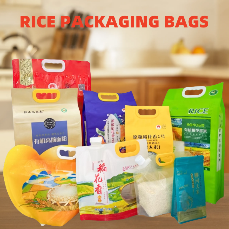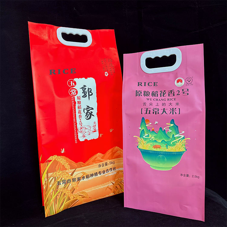 ถุงข้าวพิมพ์ลายฝุ่มสูงถุงปิดผนึกสี่ด้านกันความชื้นมีรูมือสำหรับบรรจุภัณฑ์เมล็ดข้าว