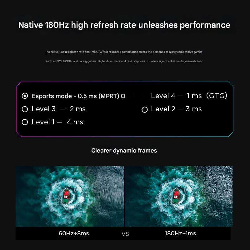 จอภาพสำหรับเล่นเกม WLED อัตราการรีเฟรชสูง180HZ 2K QHD IPS 1ms GTG DP แสงสีฟ้าต่ำ99% sRGB สำหรับเล่นเกมเดสก์ท็อป