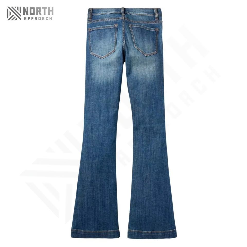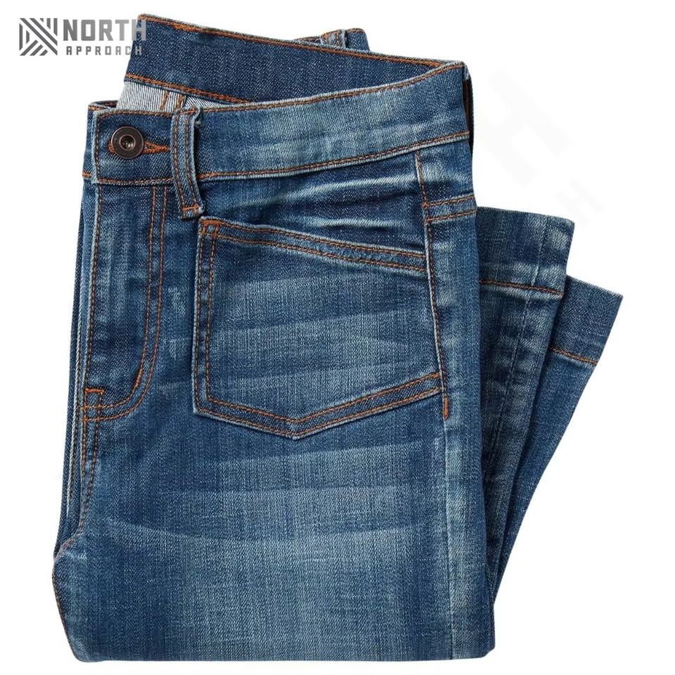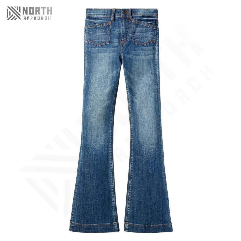 กางเกงยีนส์เอวสูงทรงบานสีฟ้ายีนส์ยืดทรงสลิมฟิตบูททรงสลิมฟิตสไตล์ตะวันตกแอกใส่สบาย & มีสไตล์กางเกงยีนส์ของผู้ชาย