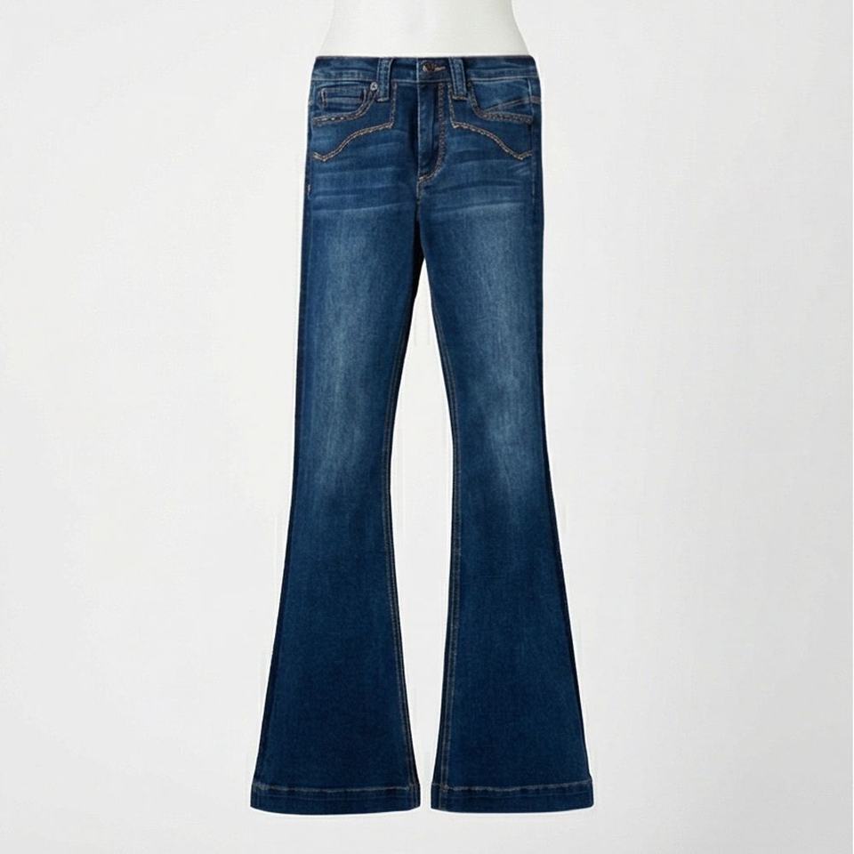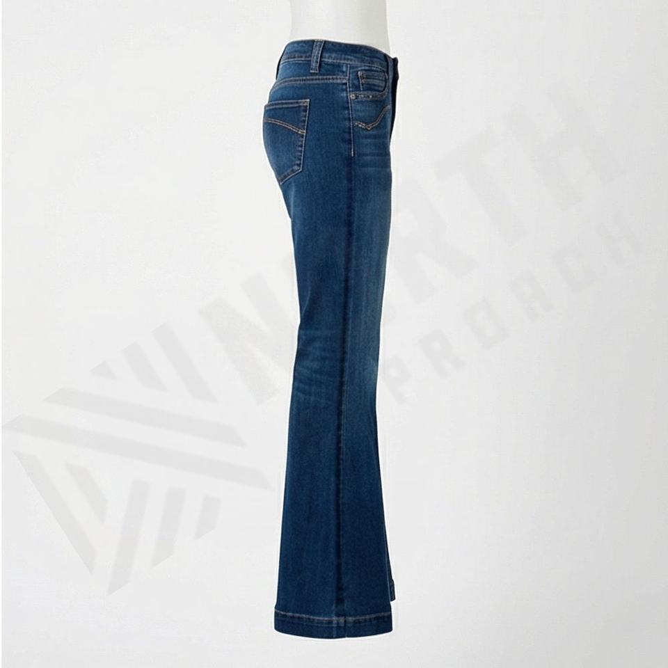 กางเกงยีนส์ทรงบูทคัทเอวสูง แต่งสีพิเศษ ผ้ายืด ทรงเข้ารูป กระเป๋าปะด้านหน้า สไตล์วินเทจ ลุคเท่ๆ สำหรับผู้หญิง