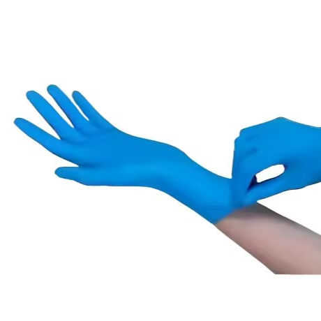 ถุงมือยางธรรมชาติแบบใช้แล้วทิ้ง ยี่ห้อเบอร์กาม็อต สีน้ำเงิน ขนาด 300 มม. แขนยาว ผ่านการรับรองมาตรฐาน CE และ ISO ผลิตโดยตรงจากประเทศมาเลเซีย