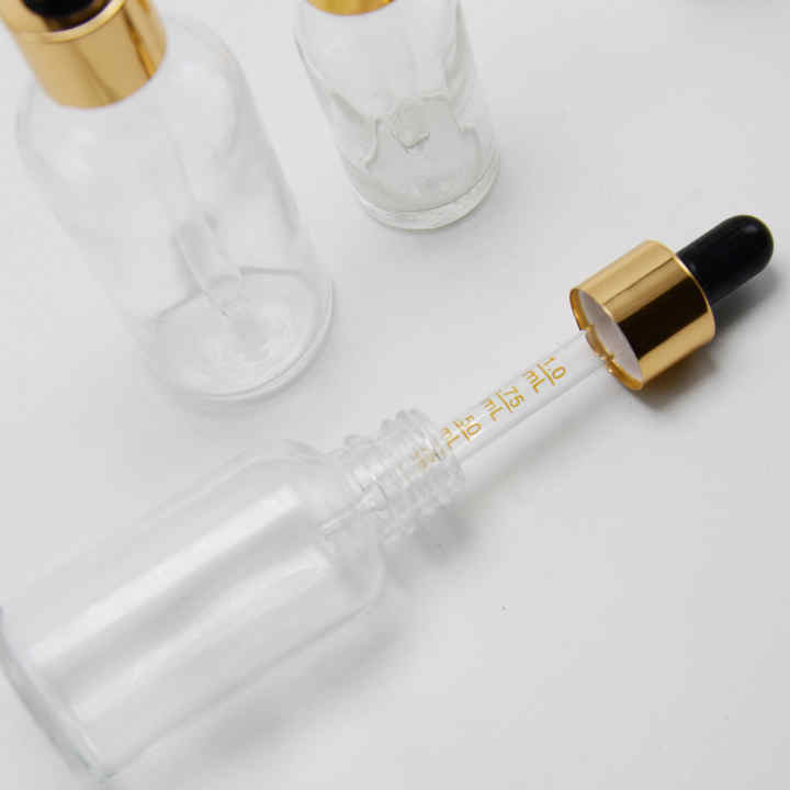 ขวดแก้วหยดขนาด 30 มล. 50 มล. 60 มล. พิมพ์ลายสกรีน ก้นขวดหนา ขวดบรรจุภัณฑ์น้ำมันหอมระเหยแบบใส ปรับแต่งได้